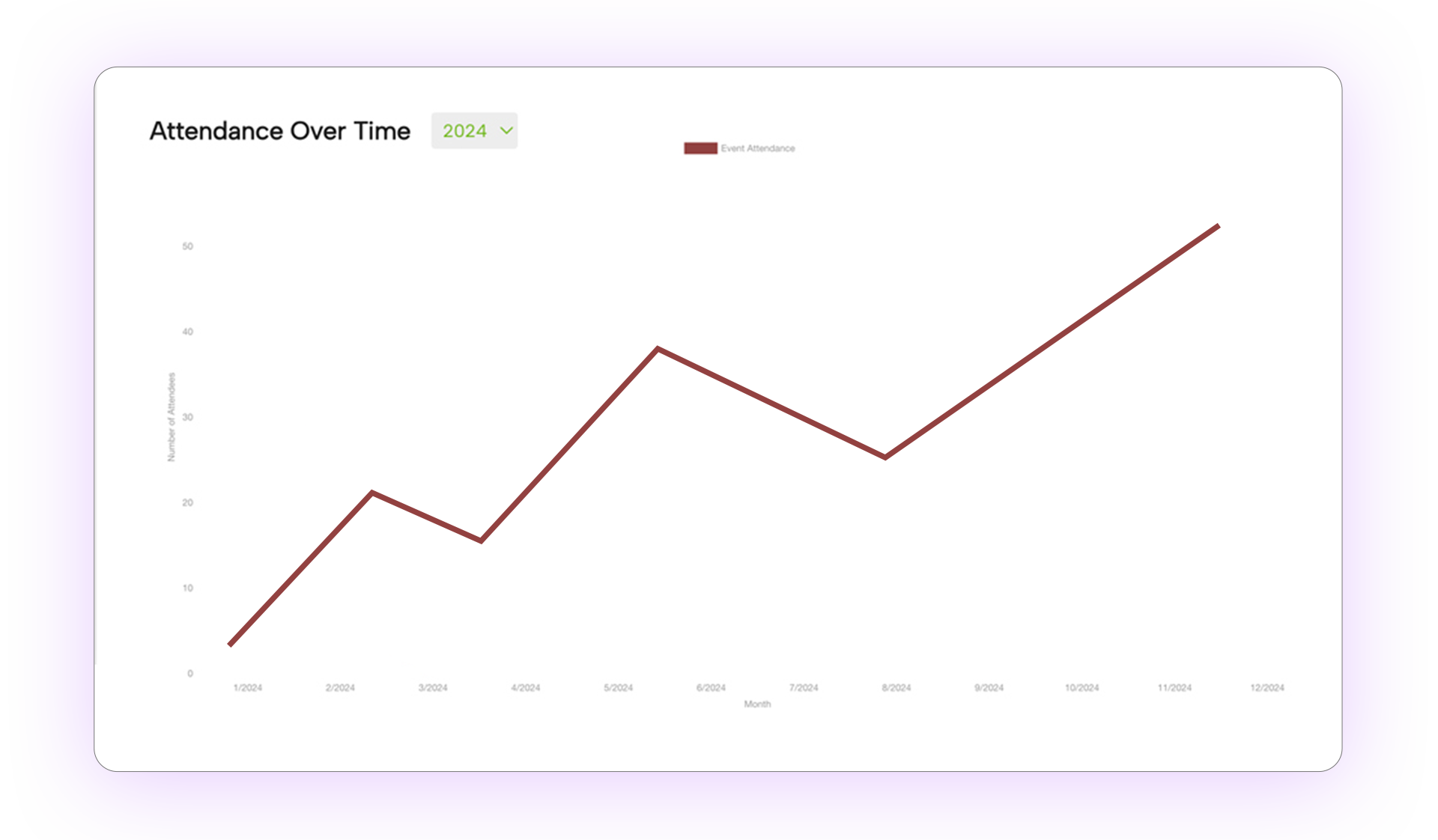 Create data-driven strategies by analyzing how many of your members attended events, how many events were held, breakdown of attendance based on key categories, and other useful metrics.