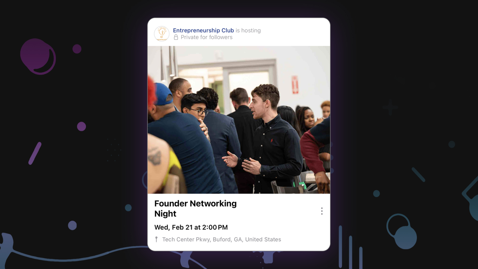 Manage events for members of your community, such as training sessions, team-bonding activities, or workshops. Assign organizer roles to delegate event creation and management.